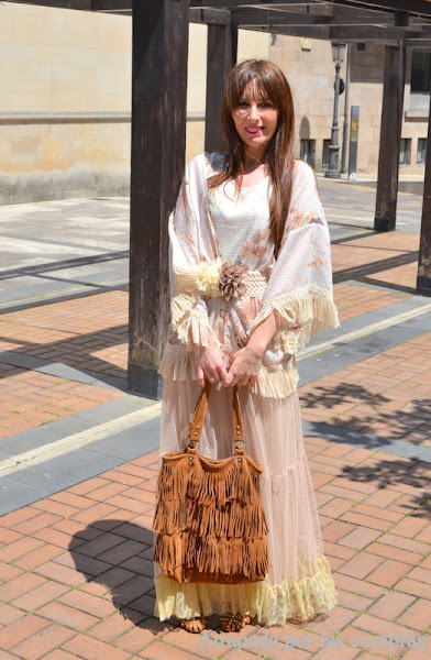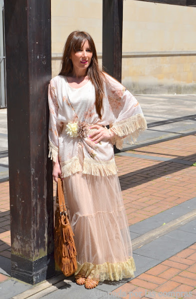 Comienzo la semana con un look romántico. Esta primavera-verano las chaquetas con flecos tipo kimono son lo más, tengo pensado hacerme con alguna más a la que ya le tengo echado el ojo pero cuando vi en LA FOLIE la que os enseño en el look de hoy no dudé en comprármela, de hecho la debo tener desde febrero o primeros de marzo y hasta hace unos días no he tenido oportunidad de estrenarla, eso sí, creo que me la vais a ver bastante porque le veo un sinfín de combinaciones. En el look de hoy la combino tal y como la vi en el catálogo de la firma, con una camiseta básica y una falda larga con el bajo de encaje que me parece una preciosidad e ideal para comenzar a poner en esta época de entretiempo, luego en verano con una sandalia tiene que quedar espectacular. De complementos un cinturón ancho con flores y uno de mis bolsos preferidos que, si me seguís, ya estaréis cansadas de ver. Qué os parece el look?