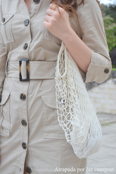 Un vestido camisero con cinturón, tela gabardina y en color camel, total y absolutamente estilo safari, que combiné, de forma bastante simple ya que quería dejarle todo el protagonismo, con unos salones estampados y una bolsa red como bolso. Y vosotras, os apuntáis a la tendencia safari?