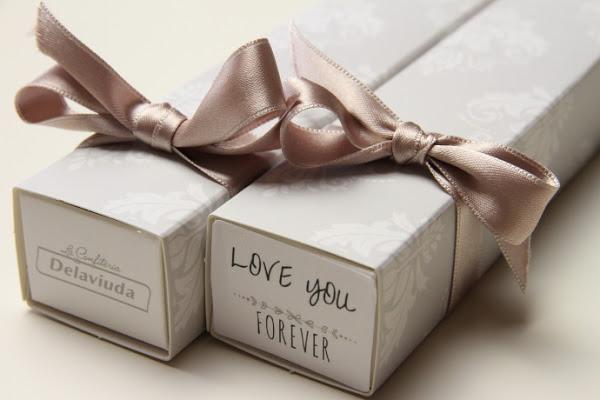 Los que me seguís en mis redes sociales ya sabéis que me encanta decirle a los míos que les quiero cualquier día del año. Cuando sientes que quieres a alguien y sabes que ese sentimiento es recíproco cualquier momento es bueno para demostrarlo, ya sea dejando una frase en la nevera, subiendo una foto especial en la redes sociales con una dedicatoria, regalando un pequeño detalle como una flor. En fin hay mil maneras de hacer feliz a los que más quieres. Hace unos días Delaviuda se puso en contacto conmigo para darme a conocer su nueva tienda online y me llamó mucho la atención la opción que ofrecen para preparar detalles totalmente personalizados, tanto para eventos como para momentos especiales. Me gustó tanto la idea que aprovechando que mi chico es muy goloso no lo dudé y enseguida pensé en decirle cuanto lo quiero con unos bombones. Una vez en su shop online fue súper fácil, en 4 sencillos pasos que no me llevaron más de 5 minutos elegí estos tres estuches con forma Long Box y estampado adamascado que llené de 7 florentinas que le encantan. Y como no, llamarme romanticona, pero en la etiqueta escribí LOVE YOU FOREVER, que es lo que siento. Enseguida llegaron a mi casa y no os podéis imaginar la ilusión que le hizo cuando los abrió y vio lo que era.