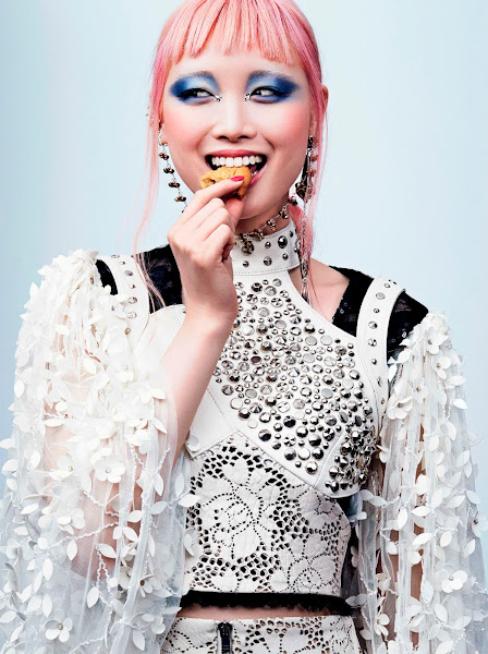 Los colores, el maquillaje y su glitter poco discreto, el septum y las uñas fuera de los tonos pastel, el estilismo (de la tercera imagen sobre todo), los accesorios que ya quisiera para mí... y el pelo rosa de Fernanda Ly.