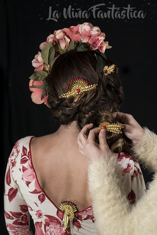 Así que, por un lado la encargada de prestarme y prepararme estos trajes tan preciosos fue Antonia Escudero de La Casa de Mary, piezas que lucieron aún más espectaculares si cabe con los complementos de Arte Floral Altea Complementos que Yurena Carmona elaboró artesanalmente uno a uno especialmente para mí acorde a cada modelo, y por último, la culpable de que saque en las fotos esa cara tan preciosa y un pelazo de infarto fue Eva Valdivia de Carri Peluqueros. Además, también conseguí enredar a mi amigo Juan Luis Espina para que inmortalizara cada momento con esa mirada tan especial y tan maravillosa que tiende a tener a través de su cámara.