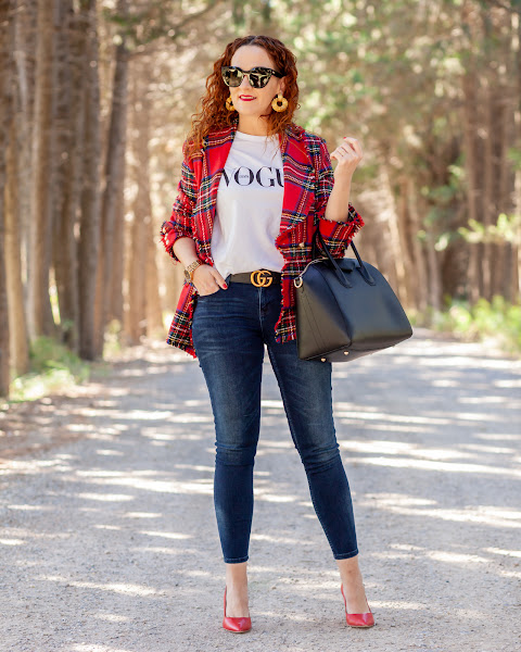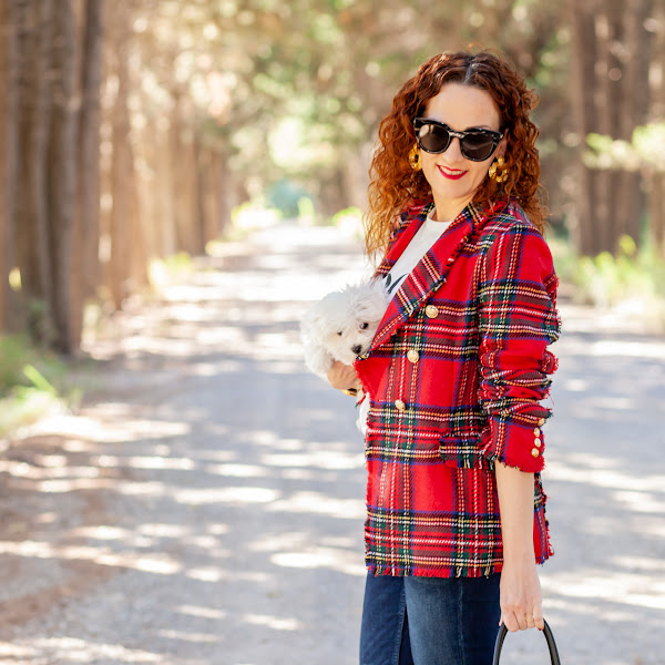Esta temporada estoy encantada con las tendencias que vienen en moda, sobre todo con los estampados. Tanto el animal print como los cuadros me chiflan, es más los que me seguís desde el principio sabéis que en mayor o menor medida siempre los he llevado. En cuanto al estampado de cuadros, el tartan en rojo es uno de mis preferidos, aun recuerdo cuando tenía 15 años y veía a los punkies de mi ciudad como los llevaban en los pantalones ¡me encantaban!. Por eso cuando veo una prenda con este print es difícil que me resista, como esta preciosidad de blazer de paño de Shein que llevo hoy.