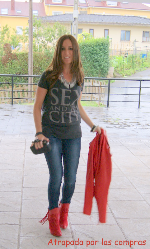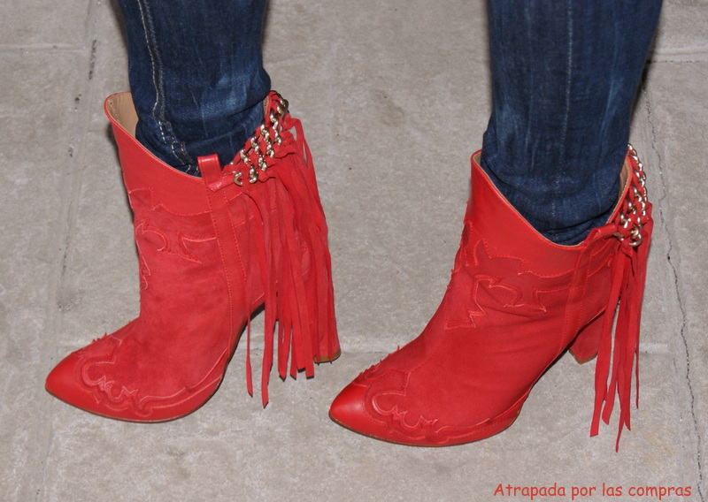 El estilo cowboy ha llegado pisando fuerte este otoño/invierno gracias a Isabel Marant, una de mis diseñadoras favoritas y que colección tras colección marca tendencia. Si a esto le sumamos el color rojo, uno de los colores más in de esta temporada, da como resultado mis adorados botines de flecos de Zara, creo que me los vais a ver mucho por aquí.... El primer look que os enseño con ellos muy sencillo, un poco cañero con jeans ajustados, collar de pinchos y una perfecto roja, los protagonistas abosolutos del outfit los botines, espero que os guste.