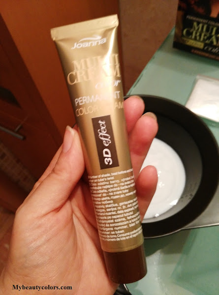 Como podéis comprobar, lleva lo mismo que cualquier tinte de marcas más conocidas, el tubo de color, la crema reveladora, el acondicionador de keratina para después de la aplicación y unos guantes de plástico. En un principio se puede mezclar el color con la crema reveladora en el bote que podéis ver para poder aplicar directamente en las raices del cabello, algo bastante práctico, peeeero, yo os recomiendo que lo mezcléis mejor en una de esas cubetas para tinte. ¿Porque? Pues básicamente porque la crema resultante tiene una consistencia bastante espesa y tienes que apretar mucho el bote para que salga por el agujero, por lo que se hace un poco más engorroso. Yo desde que lo hago así, voy mucho más deprisa y cubro mejor todo el pelo.