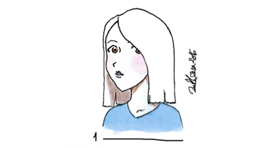 *Los rizos de la cabecera que os he dibujado son los que podríais encontrar en mi cabecita, siendo el primero de la izquierda el menos habitual y el más difícil de dominar.