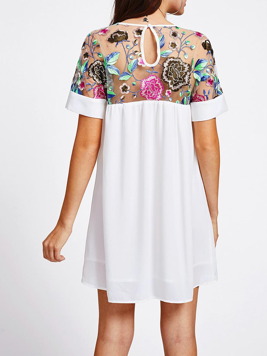 Perfecto para lucir un look elegante pero informal. Me encanta el redondeado de la falda del vestido y los bordados.