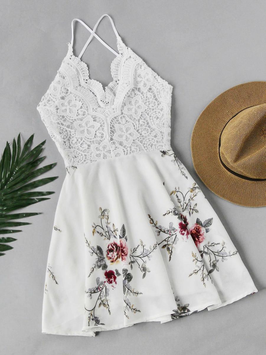 Un vestido de lo más veraniego con la espalda cruzada y encajes en la zona del pecho. Sólo mirando el vestido ya se me vienen mil formas y momentos para lucirlo.