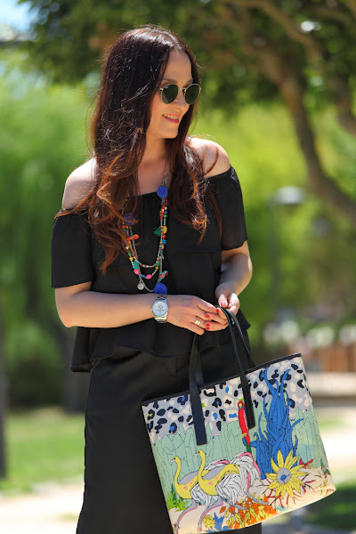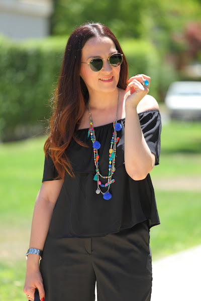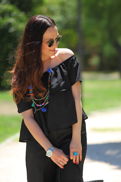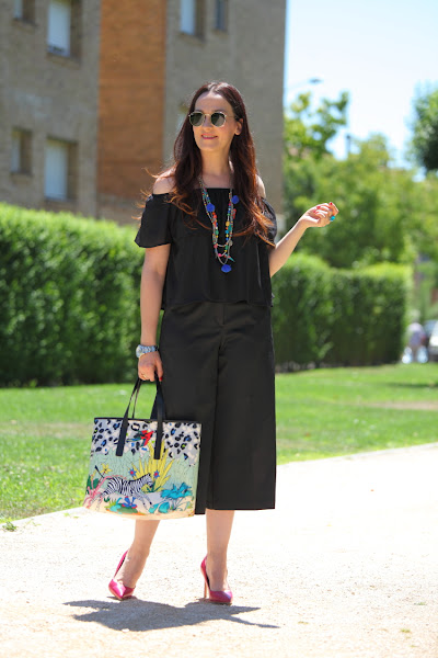 Parece que últimamente consigo huir de mi querido negro en mis looks, pero si, al final es inevitable y vuelvo a caer. Que queréis que os diga, pues si, me gusta y mucho, además no me disgusta como me queda. Hoy lo llevo en un look total black en el que estreno tanto el top off the shoulder como los culotte. No me atrevía con este tipo de pantalones hasta que para las rebajas decidí hacerme con unos. Ahora que ya los he probado me gustan, así que no dudo que este otoño invierno entre alguno más en mi armario.