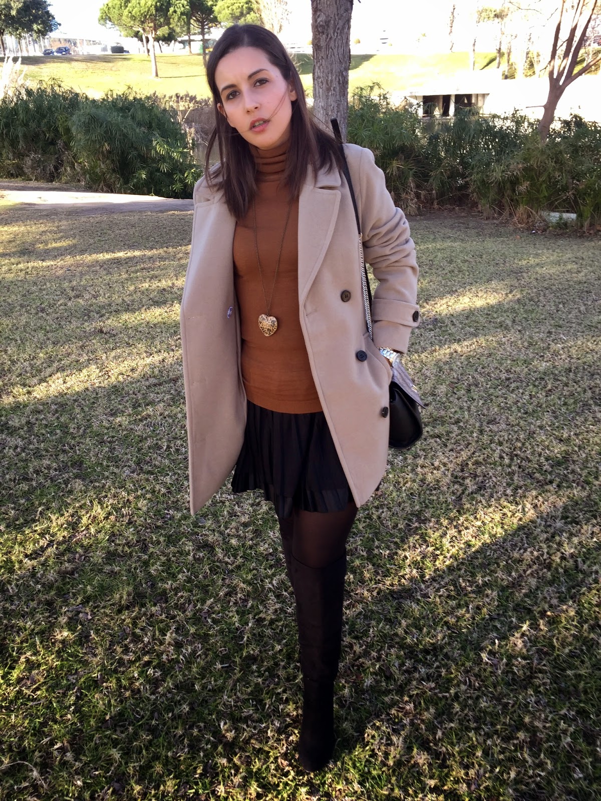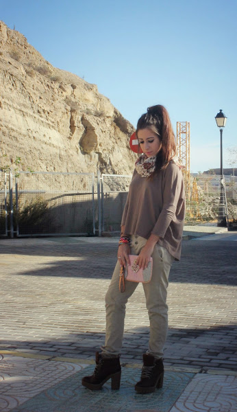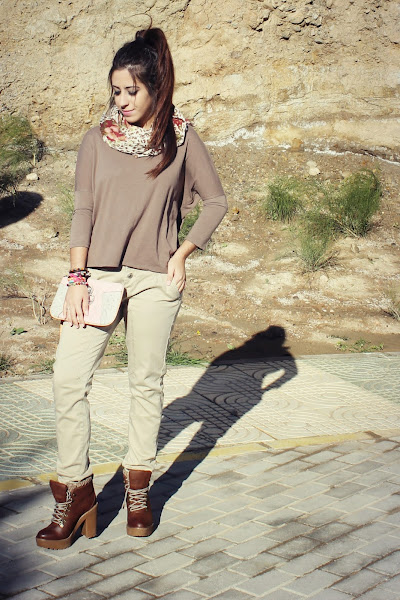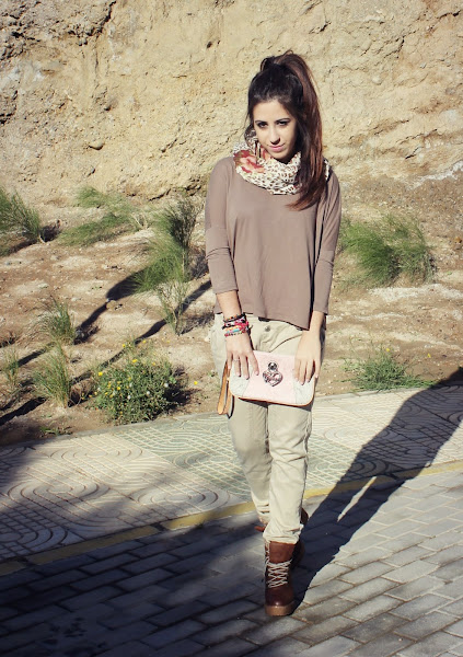 Hola mis amores!!! ¿como estáis? yo super super feliz, estaba deseando que llegara noviembre. Todo el que me conoce sabe que amo noviembre y que es mi mes favorito, estoy super contenta. Además cada vez hace más frío y eso también me encanta. El otro día mi madre y yo decidimos sacar la ropa de otros años que teníamos guardada en el sótano y entre ella encontré un look ideal para mis botas nuevas de Bershka que, enserio.., estoy enamorada de estas botas!! He elegido tonos marrones para este look tan otoñal, y le he dado un toque pink con el bolso de mano, las uñas, y los detalles del pañuelo. Os dejo con las fotos, espero que os guste! Besitos