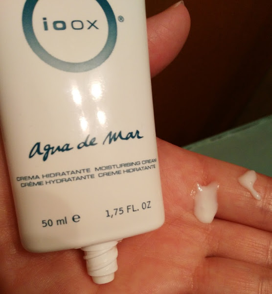 -AGUA DE MAR IOOX, CREMA HIDRATANTE: Uno de los productos que me enviaron fue esta crema hidratante facial en cuya fórmula podemos encontrar Agua de Mar. Este inusual ingrediente nos aporta las sales minerales que necesitamos para estimular y fortalecer la barrera cutánea de la piel, aumentando así su flexibilidad y elasticidad. Entre sus ingredientes también encontramos el Alga Wakame, la cual reactiva los genes que contribuyen a la síntesis de la elastina, el colágeno y el ácido hialurónico. Contiene 50 ml y a continuación podéis ver su composición.