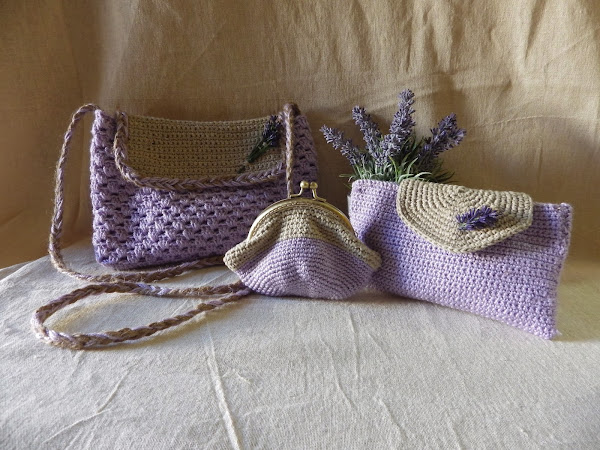 Pero también ha hecho conjuntos preciosos de bolsos, neceseres y monederos. En tonos muy cálidos y bonitos para la primavera/verano.