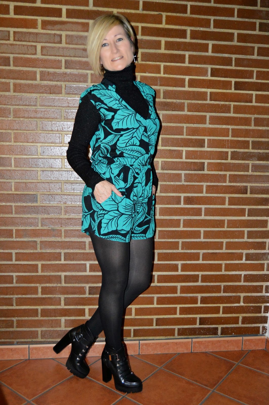 El look de hoy tiene como protagonista un mono corto que compré este verano en una tienda de Tarifa (Mucholarala) que me encanta porque tienen unos diseños muy originales. Es de un tejido crepado con mucha caída y que pensé que de esta forma me serviría también para el frío. Aunque soy consumidora de grandes cadenas, cada vez más me gustan las tiendas con diseño propio en las que, como poco, encuentras originalidad y exclusividad por un precio razonable.
