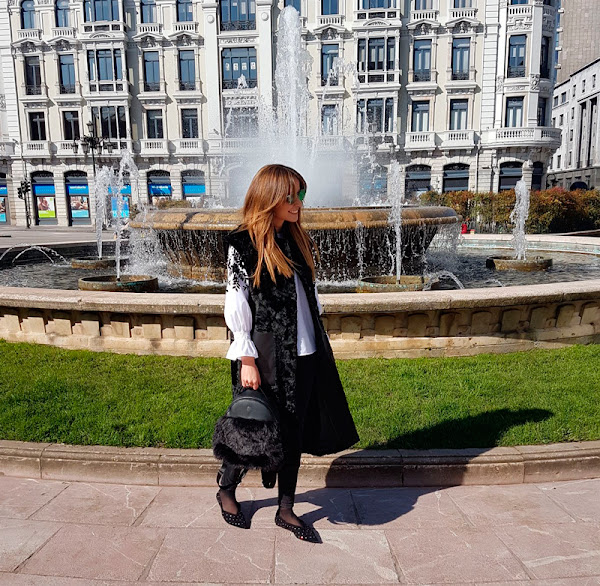 Como novedades os enseño, sin duda la prenda estrella del look para mí, este chaleco extra largo que fue todo un flechazo nada más me lo probé, la blusa que me cogí hace poquito acompañando a mí hermana de compras y terminamos ambas con las misma y como no mí ya famosa mochila peluda que no me quito de encima porque es super cómoda y va con todo ! Y luego estos zapatos que nunca había sacado por aquí!