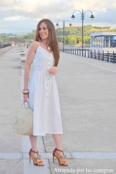 Una de las tendencias en vestidos de este verano 2018 son los vestidos de botones delanteros. Hoy os enseño un look con uno de estos vestidos en uno de los tejidos perfectos para el verano, el lino. Lo combiné con sandalias de flecos y un capazo redondo para darle un toque más casual. Qué os parece el look?