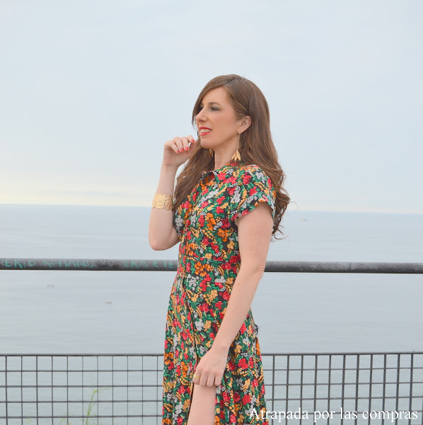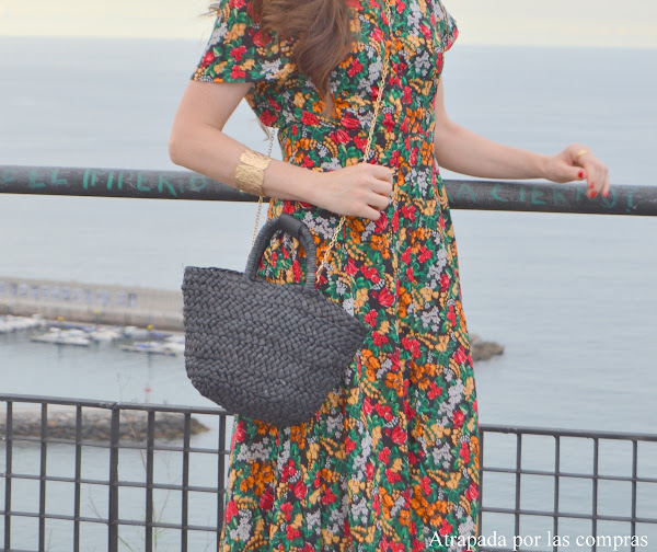 Una de esas prendas que no debe faltar en nuestro armario, sobre todo en época estival, es un vestido camisero largo, de hecho se puede decir que se ha convertido en un básico. Son cómodos, estilosos y además de adaptan a cualquier ocasión. Hoy os enseño un look con un vestido camisero largo de estampado floral de Zara, super ponible y versátil, que combiné con sandalias de tacón y mini capazo de rafia negros, un look formal y muy de mi estilo, pero que cambiándole simplemente las sandalias de tacón por unas sandalias planas de tiras le damos un aire totalmente distinto. Como el vestido lleva un estampado muy llamativo sólo le añadí como complementos un conjunto de brazalete y pendientes dorados de Parfois. Qué os parece el look?