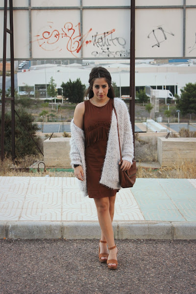 Im wearing a cute brown dress perfect to this season that it isnt hot neither cold. I combine it with a white cardigan perfect to cold mornings. The best thing is can wear these kind of looks without socks! (something good of this season) we have to take advantage of it!!