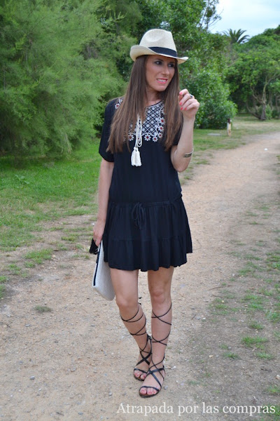 La tendencia boho, hippie, sigue estando muy presente una temporada más y podemos adoptarla con multitud de prendas. Una opción fácil, cómoda y que nos soluciona el qué me pongo de una tacada son los vestidos. Hoy os enseño un look con un vestido negro bordado con cierto aire hippie que encontré en ROCOCOA CANDÁS, no soy muy de vestirme de negro para looks de día en verano pero tengo que reconocer ...