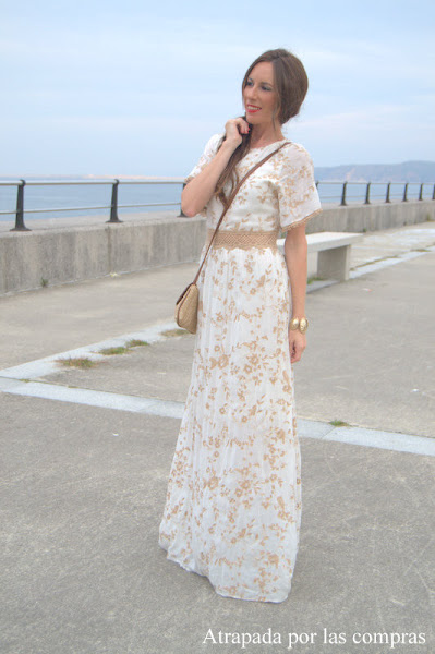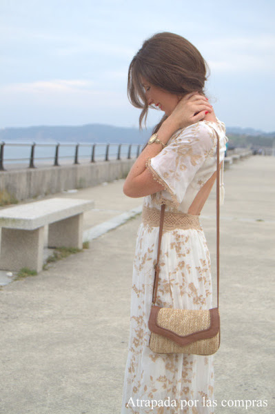 Los vestidos largos con algo de manga son la alternativa perfecta para esta época de entretiempo, así es que reservé el que os enseño hoy para estos días de cambio de estación que me vuelven loca a la hora de vestirme. Se trata de un vestido largo bordado de estilo romántico con escote en la espalda y crochet en la cintura, me parece super favorecedor y además una opción de vestido que también nos puede servir para acudir algún evento, un recogido bonito con una corona de flores y un cltuch y estamos listas. En este caso lo combiné de forma más relajada con una coleta baja ladeada y un bolso bandolera de rafia.