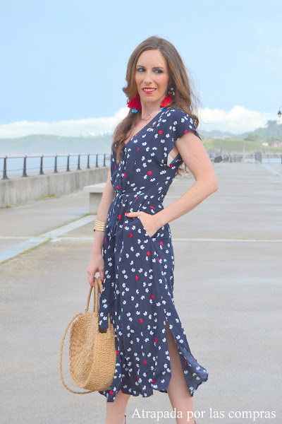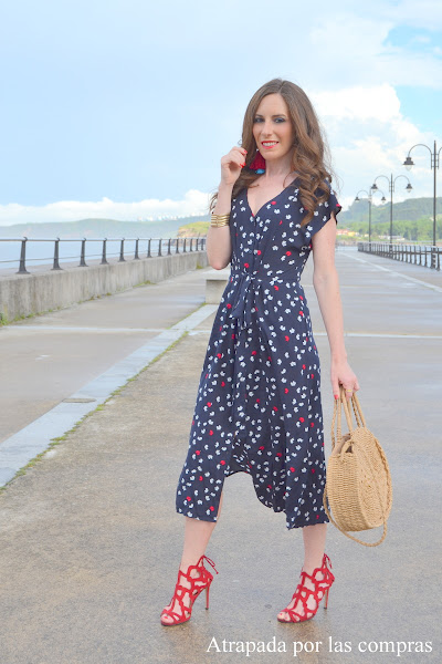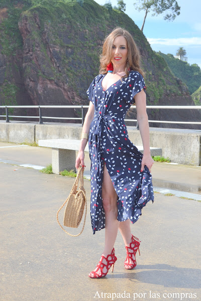Hay vestidos que cuando los ves en la percha no te dicen nada pero una vez puestos la cosa cambia y eso es lo que me pasó con el vestido que os enseño en el look de hoy. Un vestido camisero con estampado de mariposas que me resultó super femenino y estiloso, incluso con cierto punto sexy tanto por el escote como por las aberturas que lleva la falda. Lo combiné con unas sandalias rojas a juego con el estampado y con un cesto de rafia. Qué os parece el look?