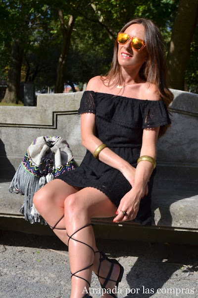 Una de las tendencias de la próxima temporada otoño/invierno van a ser las prendas de encaje y todo gracias al estilo victoriano que va a estar muy presente. Son muchas las firmas y diseñadores que han apostado por este tejido que aporta cierto romanticismo a nuestros looks, basta con echar un vistazo a las colecciones de Valentino, Rodarte, Nina Ricci o Alexander McQueen, entre otros, y dentro de nuestro país las de Esther Noeriga o Juana Martín, para darse cuenta de que el encaje se va a llevar y mucho. En el look de hoy os enseño un vestido que mezcla esta tendencia del encaje con una que este verano está arrasando que es el escote off the shoulders o con los hombros al aire, un vestido que sólo cambiando el calzado y el bolso nos puede servir tanto para un look de día como para un look de noche más arregladito. En esta ocasión os lo enseño en un look de día, un look cómodo y casual combinado con una sandalia romana y uno de los complementos más it ahora mismo que son las mochilas, ir pensando en haceros con una porque además de cómodas este otoño vienen arrasando. Qué os parece el look?