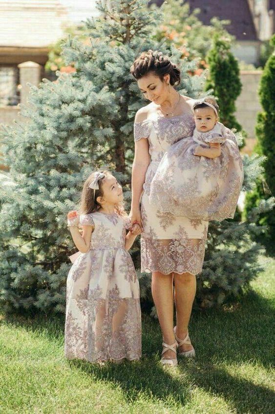 Algunos de los colores más usados en estos vestidos de encaje para bautizo mamá joven, son los colores claros.