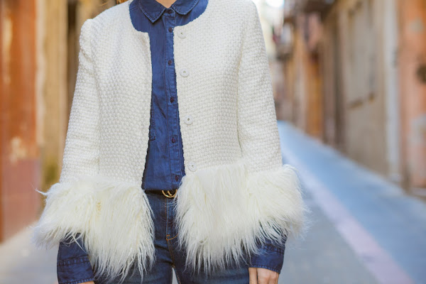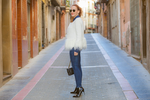 Con eso de que el veroño esta vez ha durado más de lo normal, ya tenía ganas de que empezara el frío. Y no, no tenía ganas por que me apetecía sentir el frío, sino porque ya no aguantaba más sin estrenar todas las prendas que he ido comprando esta temporada. Una de ellas es esta fantástica chaqueta de tweed blanco y pelo. Ayer por fin pude ponérmela y la combiné con un total look tejano, botines negros y mi querido Chanel.
