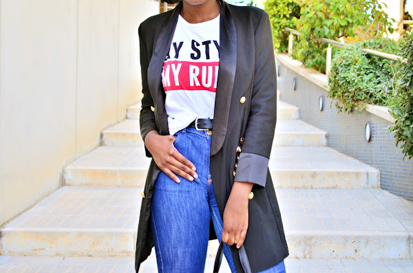 Feliz jueves bonitos míos! Al parecer, habéis visto mejor en el post anterior los detalles de la bomber y os ha gustado aún más Me alegro! Hoy os dejo con el outfit que llevé ayer mismo.Ya os había enseñado esta americana en forma de vestido en otros post. Desde entonces ,solo me la puse otra vez más y esta es mi tercera vez ,no porque no me guste la verdad, sino porque miedo me da de gastarlata ...
