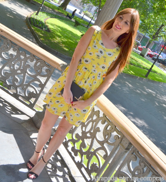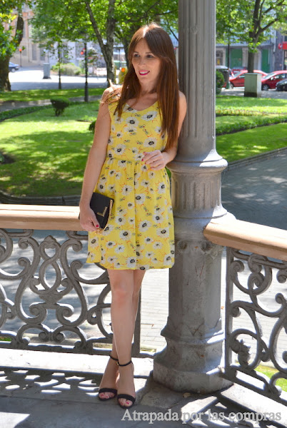 El vestido de flores que os enseño en el post de hoy os sonará, lo saqué hace un tiempo en otro post en su versión rosa, podéis verlo aquí, pero en amarillo me pareció tan bonito que no me pude resistir a enseñároslo. El amarillo es uno de los colores de esta temporada primavera/verano y las flores son el estampado que siempre es tendencia en cuanto llega el buen tiempo así que la combinación de ambos me parece perfecta, además en un vestido que, dependiendo de los accesorios, nos puede servir tanto para ir a trabajar como para una cena. En esta ocasión lo combiné de forma más arregladita pero muy sencilla con unas sandalias negras y un bolso de mano negro. Qué os parece el look?