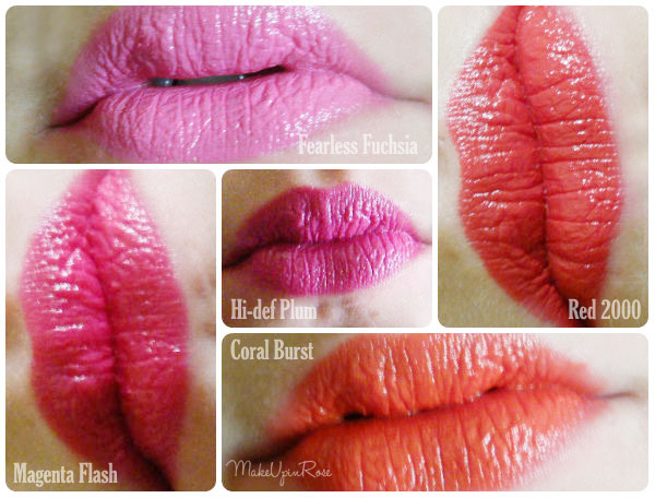 De todos mis favoritos son los tres primeros, son colores distintos y bastante intensos. No tengo nada en contra de los rojos, pero no es un tono que al que le tenga especial aprecio tampoco.