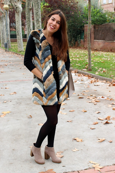 Today new post. Its cloudy, but its good because its not too much cold and I can wear my new fur vest from Stradivarius. I wear it with a basic black dress from Mango, booties from Pull and Bear and the bag is from H&M that you saw it in another posts.