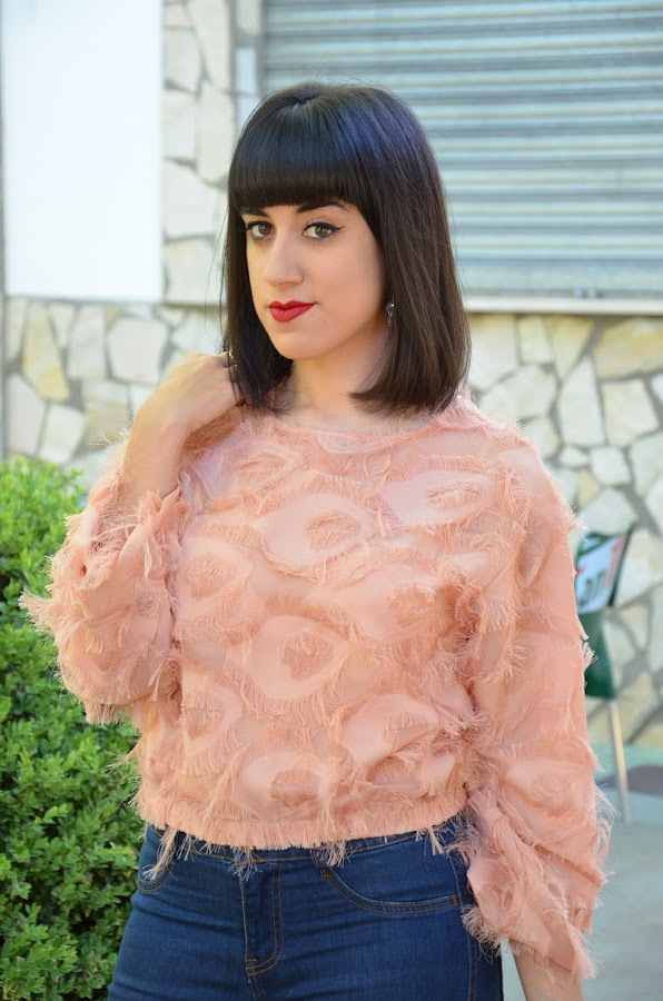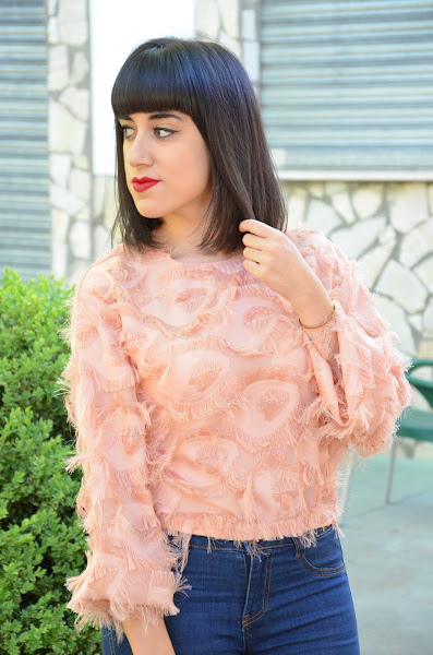 De vez en cuando hay que ver la vida de color de rosa y ese es el color protagonista del look de hoy con top de flecos de Shein. Es super original y llamativo. Es mas bien un crop top y tiene goma ajustada en la cintura. Lo tienen en mas colores, de hecho no descarto pedir el marrón porque es precioso también.