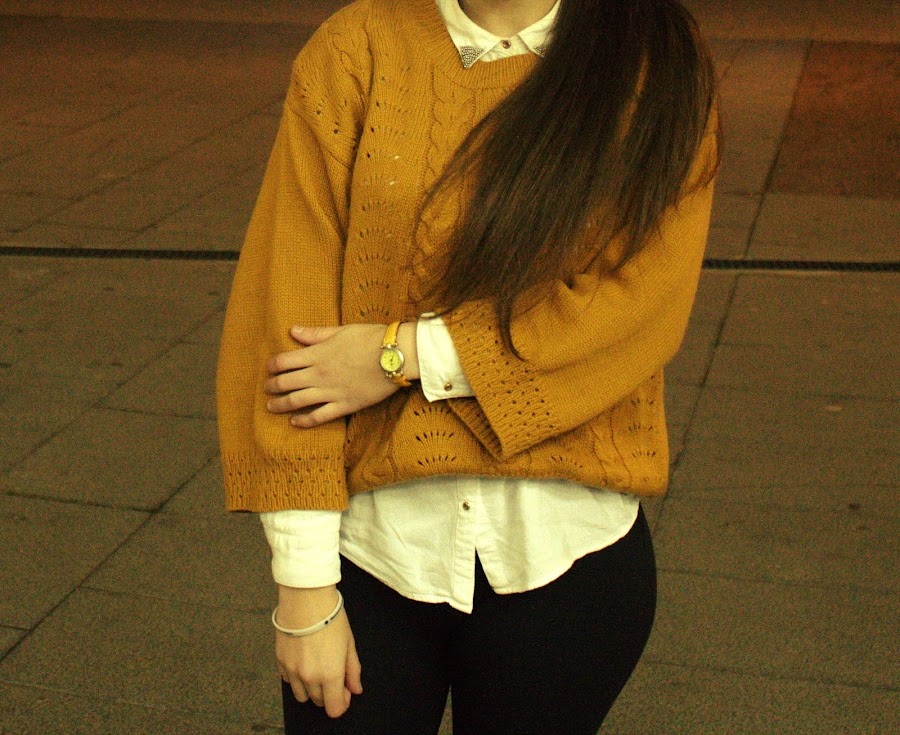 Sweater: Zaful (same here) // Bag: Zaful (same here) // Scarf: Zaful (same here) // Shirt: Stradivarius // Leggings: Bershka // Boots: Local Store // Jacket and Watch: Vintage