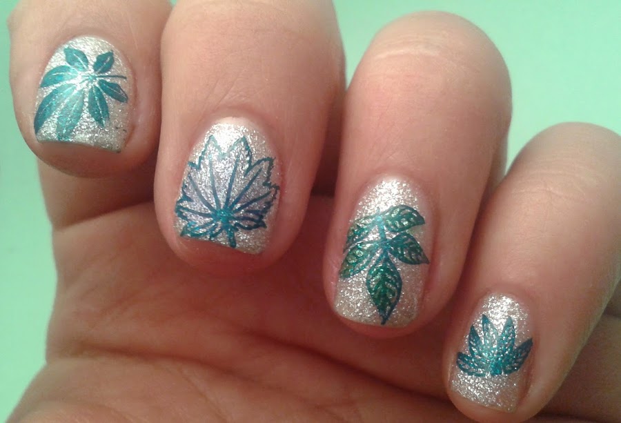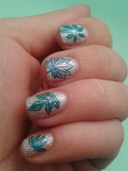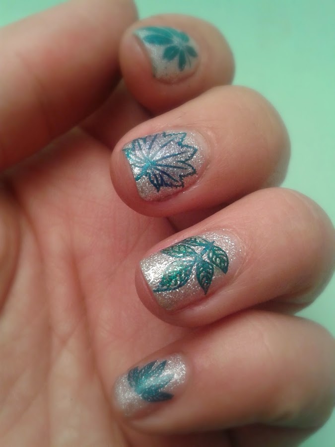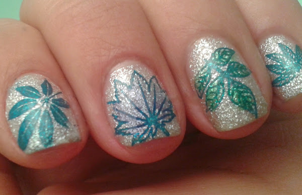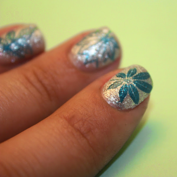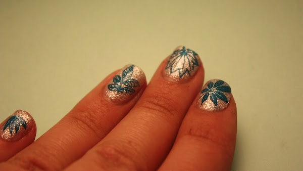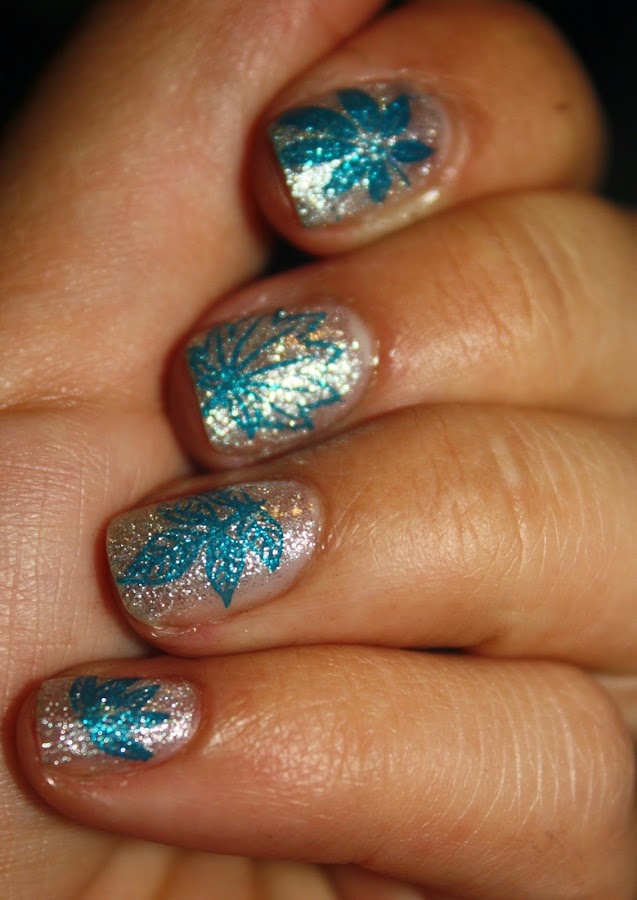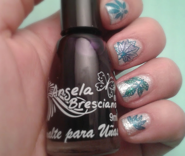 Use la placa Moyou Mother Nature Nª7 Si, va post sin foto de placa, porque estoy sacando (por pocos días mas, Gracias Romi!!) fotos con el celu, y la verdad no me gustan como salen las placas. Para estampar, use el viejo y querido Top Radiance azul.