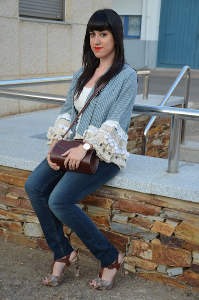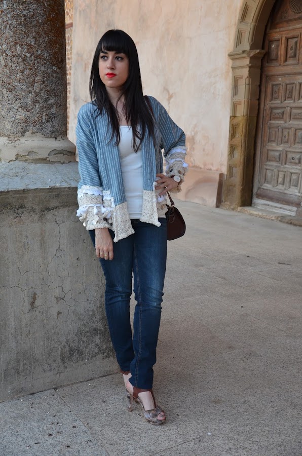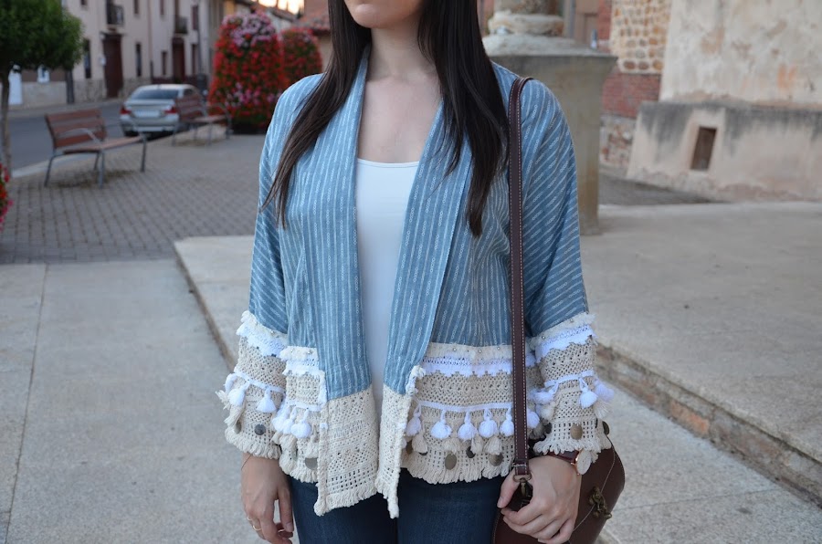 En esta ocasión lo combino con un look estilo boho con este kimono de Zara que ha sido el "must have" de la temporada, y con calzado y complementos en tonos marrones.