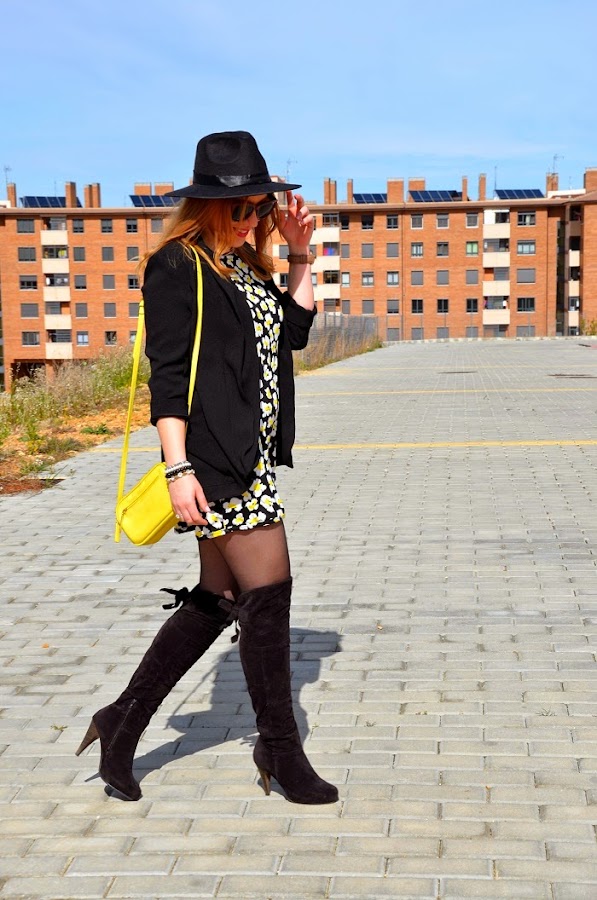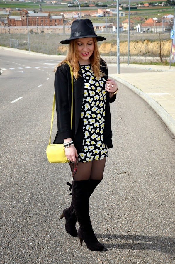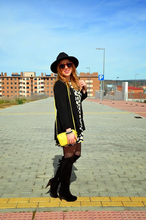 Es un hecho que la primavera y los prints florales, siempre, van de la mano. Aunque quizás pasar de prendas oscuras a todo un abanico de colores de golpe es "too much" para algunas, como es mi caso. Me encantan las prendas de colores alegres y aquellas de tonos pastel, aunque aun me veo demasiado pálida para poder lucirlas. Una suerte haber encontrado este vestido de nueva temporada de Kiabi que tiene la dosis perfecta de flores y colorido, perfecto para estos dias rarunos que estamos teniendo. Quise darle mi toque con las superbotas, las cuales no pensé que me pondría tanto como lo estoy haciendo, el sombrero básico, blazer oversize y rescatando mi precioso bolsito-pollito :) Un look con mucha personalidad. Espero os guste tanto como a mi, ya que se ha convertido en uno de mis looks favoritos en lo que va de año. Un besito y ánimo con la semana.