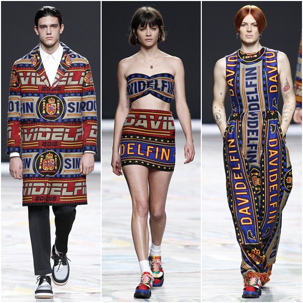 Y su última colección, otoño/invierno 2016/2017 MENTIRAS. Creada en torno a las bufandas futboleras y en la que aparecen los Levis 501 que customizó David para esta firma de jeans y los zapatos creados en colaboración con UNISA y The Art Company.