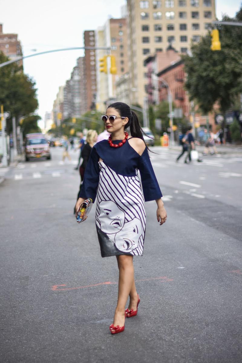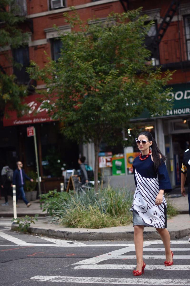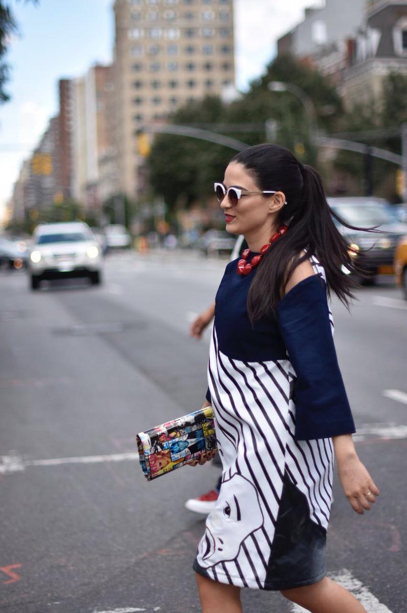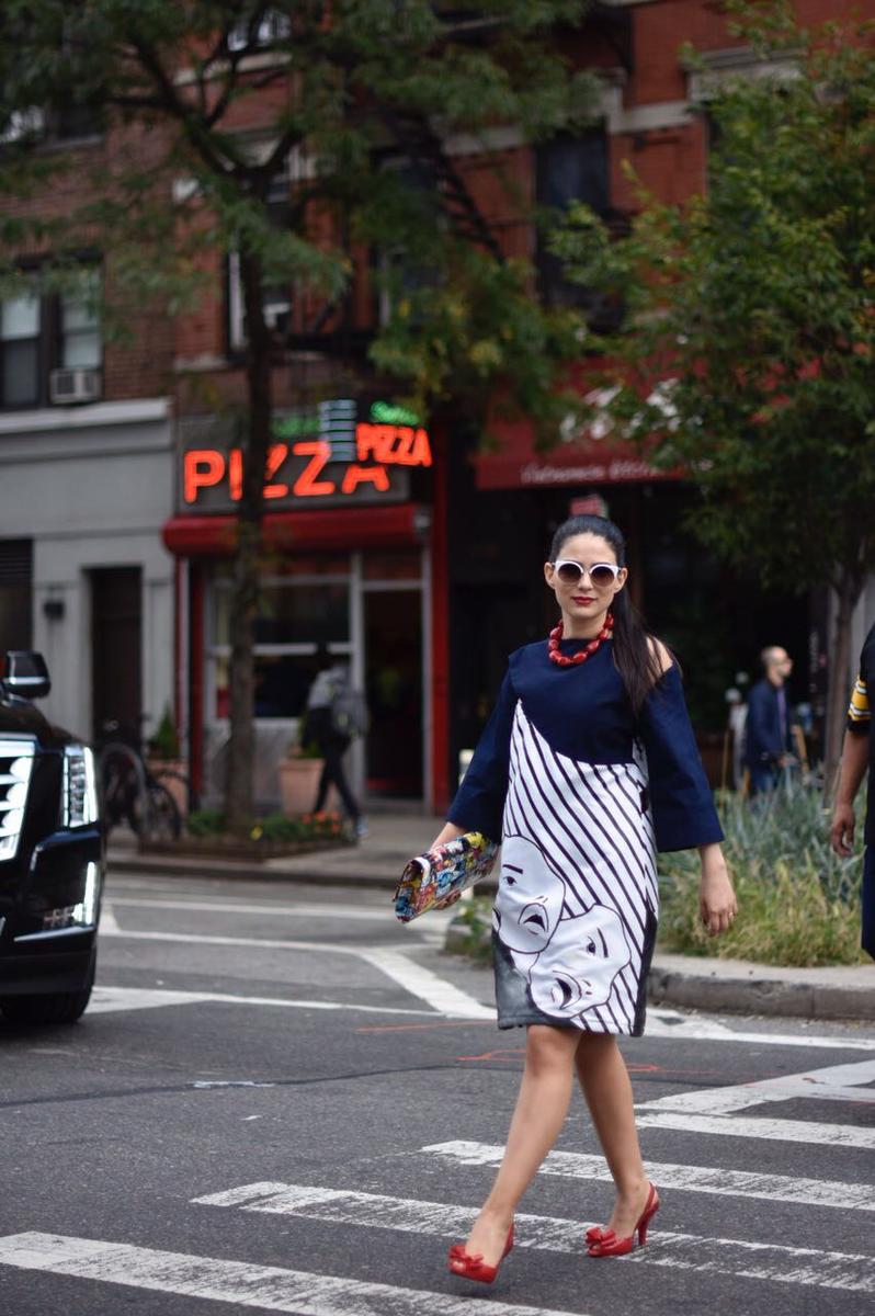 En mi primer día de pasarelas en NYFW decidí vestir un atuendo muy especial. Me encantó ver la colección de Beatriz Rodríguez en el pasado MBFWSJ. La estética y colorido de las piezas se quedaron en mi mente y al empezar a planear el viaje a NY de inmediato pensé en localizarla.