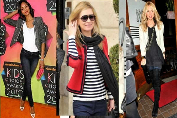 Siempre que veo a las famosas con chaquetas tipo Chanel me llaman la atención, me encantan, sobretodo la idea de combinarlas con ropa sport, para cumplir la regla de "arreglada pero informal", aunque puede quedar perfecta y completar el look para ir a una fiesta.