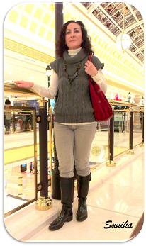 Es un look cómodo, para poder darte buenos paseos arriba y abajo del centro comercial. Unos vaqueros, una camiseta básica y un chalequito de lana supercalentito.
