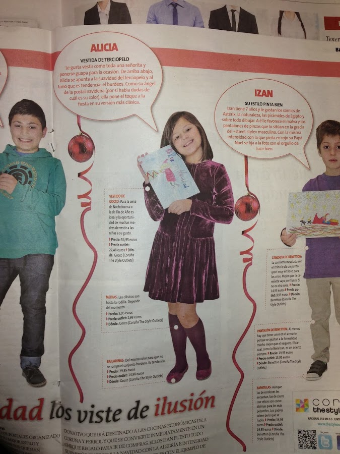 Y Alicia también tuvo la suerte de ser una de las cuatro ganadoras del concurso de Christmas navideños y salió en el suplemento de La Voz con un estilismo de Gocco ( también de The Style Outlets ):