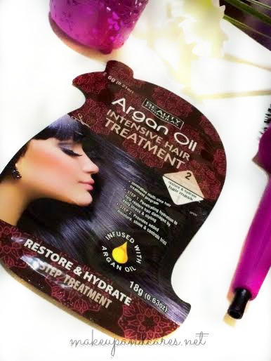 Argán Oil Intensive Hair Tretament es un tratamiento intensivo de dos fases . Viene envasado en un sobre dividido en dos partes, por un lado la mascarilla que contiene 18g, y por el otro el serum de 6g.