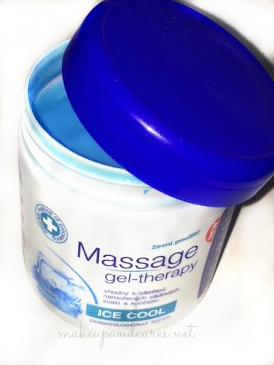 Y el último producto del que os voy a hablar hoy es el Massage Gel - Therapy Ice - Cool , un gel de efecto hielo para tratamientos con frío de las contracturas de la espalda y las extremidades , de color azul y textura prácticamente acuosa . Para mi ha sido uno de los mejores descubrimientos del año . Yo tengo un problema de cervicalgia y lumbalgia practicamente crónico, tengo la espalda muy contracturada y sufro unos dolores horribles , si alguna de vosotras sufre lo mismo , que espero y deseo que no , sabe de lo que hablo . Este gel mentolado de origen húngaro contiene extracto de plantas naturales , está destinado a masajes deportivos y de regeneración . Se aplica en movimientos circulares y se puede usar cuantas veces sea necesario . Yo estoy encantada con el y noto un alivio considerable después del masaje , también lo he utilizado para las piernas y tobillos , y es ideal , desinflama y proporciona una sensación de frescor muy agradable . Ayer lo utilicé para la congestión , muy propia de esta época invernal , inhalé un par de veces y me sentí bastante mejor después de hacerlo . Lo mejor de todo es que solo cuesta 1.50€ y contiene 300ml , no es un producto de belleza pero me pareció interesante compartirlo con vosotras porque es muy versátil .