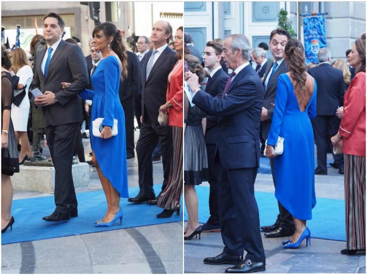Un look formado por un vestido de corte sencillo made in David Christian, de manga larga y falda superpuesta con la espalda descubierta en azul klein (que me encantó por su preciosa caída) a juego con unos maravillosos salones de raso en el mismo tono con detalle de hebilla de strass de Felipe Sapena, de tacón medio alto, como manda el protocolo en este tipo de actos y una cartera pequeña de piel de Malababa con una enorme piedra de ágatha, en azul noche. Como complemento para realzar el vestuario, unos espectaculares pendientes de Los Sueños de mi Niña.