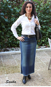 Cómo podéis ver la falda es totalmente recta y lleva unos ligeros desgastados como los llevaría un pantalón vaquero.
