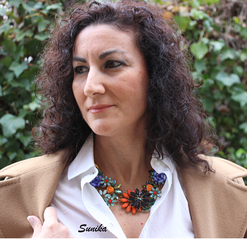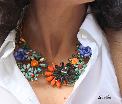 En este caso la combiné con una camisa blanca básica y botas. El detalle lo marqué con el collar que es bastante colorido.