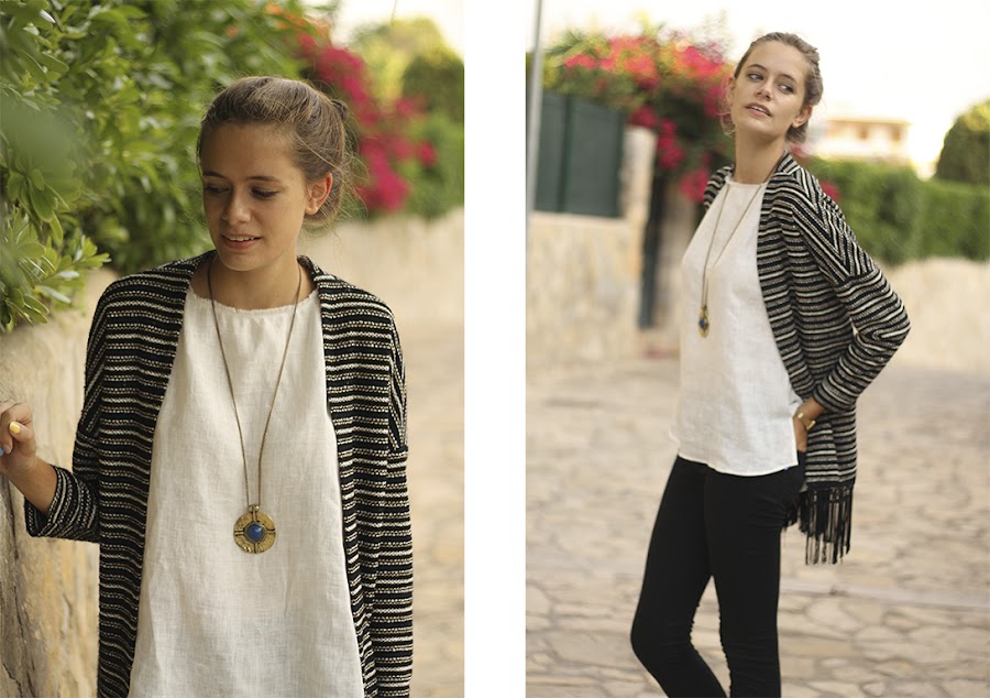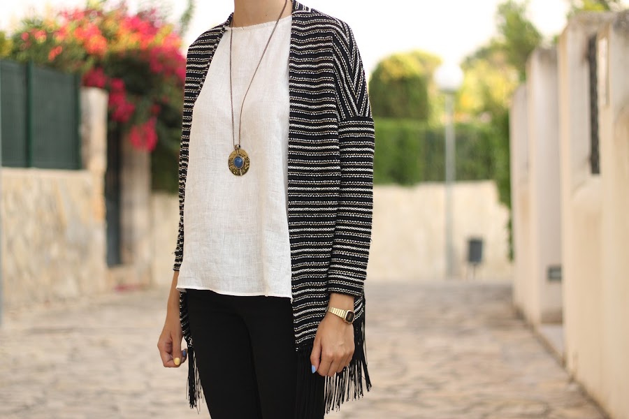 On the other hand, today I show you a simple outfit, I wear a kimono because I can take ith when I want. I love the B&W combinations!