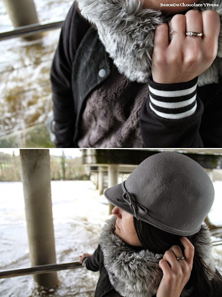 Wear jeans with black bear and baseball sweater, red wellies to give some color to the look, bag and hat in gray and my super neck, my ally this winter.