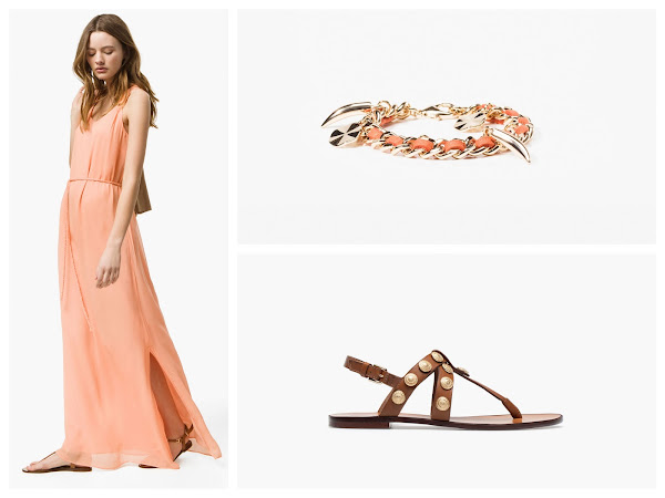 Precioso vestido en coral clarito...cómodo y elegante...de Massimo Dutti.