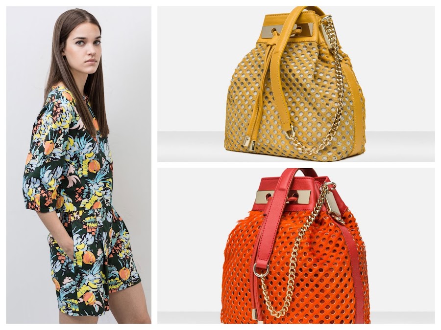 Estos bolsos-sacos me encantaron cuando los vi, que tentación!!! Y el conjunto estampado muy veraniego...
