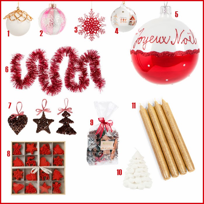¡Velas!, ¡cómo nos vamos a olvidar de las velas!. Tenéis algunas muy bonitas como éste árbol de Zara Home (10) por 17,99? o los típicos cirios dorados para darle un ambiente especial a las comidas familiares. Éstos (11) son de Maisons du monde y cuestan 5,90?.